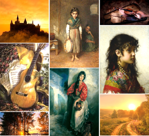 Мир велик – и бесконечно мал,Горизонта край прозрачно-тонок,За спиной пригревшись, задремалМаленький усталый цыганенок.В ней мой грех и поздняя любовь,Свет надежды и туман тревоги,Спи, дитя, под шорох башмаковПо лесной нехоженой дороге.А для счастья малость нам нужна —Две монеты и чуть-чуть покоя —И тогда, когда я шла одна,И теперь, когда нас стало двое.Что ей снится, знает Бог один,Спит мой ангелок, свернувши крылья…Может, славный юный господин,Что до замка нес ее две мили?А в ответ – что сделать я смогу?Разве только спела бы задаром,Я его подарок сберегу —Черную испанскую гитару.Помню, что-то пел он ей в пути,Говорил, смеялся вместе с нею…До жилья бы засветло дойти —Осень, ночи стали холоднее.Доченька, мой нежный лепесток,Знаю, что бродить устану вскоре,Мы найдем чудесный городок,Мы с тобой поселимся у моря.Будет счастье, будешь весела,Погляди: в вечернем небе синем,Над тобой раскинула крылаБедности бродячая богиня.