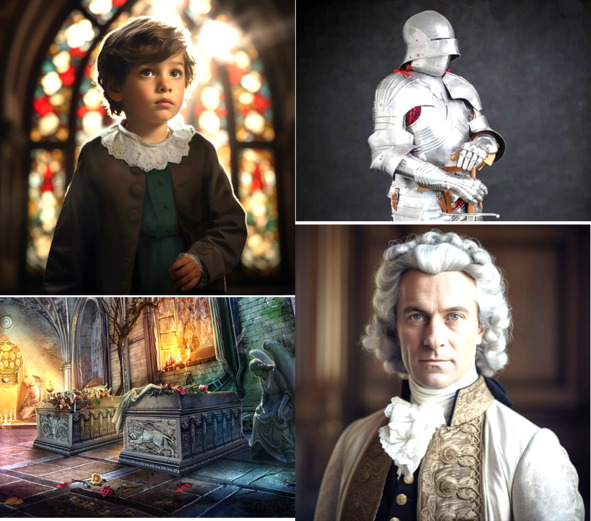 Шаги на пороге, свет красиво переливается сквозь витражи. Роза на полу – темно-красная, как мамино нарядное платье. Молодая служанка в белом чепце берет мальчика за руку, на ее гладких щеках словно блестит утренняя роса.