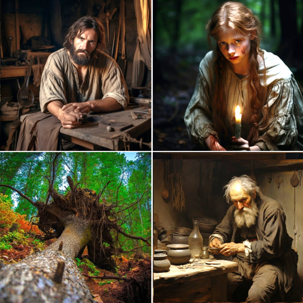 На следующий день, уже под вечер, я отправилась на другой край деревни, к старому деду Гинеку по прозвищу Ложкарь. Дед этот был совсем дряхлый, беззубый и полуслепой, а жил он тем, что резал и долбил из дерева ложки, миски, корыта, прялки, детские колыбельки и прочую нужную в хозяйстве вещь. Из родни у него была только вдовая бездетная племянница, а жена его с детьми, сказывают, померли в тот год, когда мор по земле шел.