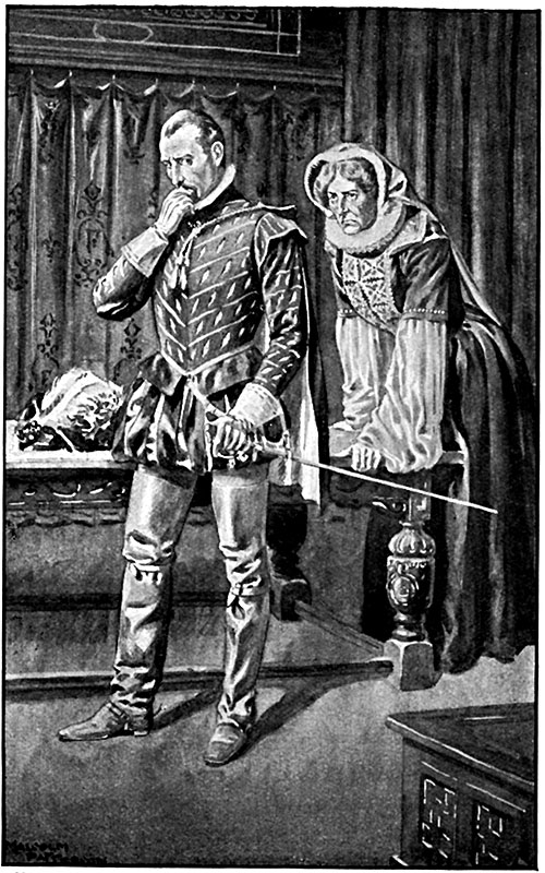 В то время как вся эта молодежь, веселая и беззаботная, по крайней мере с виду, неслась золотистым вихрем по дороге на Бонди, Екатерина, свернув в трубку драгоценный приказ, только что подписанный Карлом, велела ввести к себе в комнату человека, которому командир ее охраны отнес несколько дней тому назад письмо на улицу Серизе близ Арсенала. Широкая из тафты повязка, похожая на погребальный венчик, скрывала один глаз этого человека, оставляя на виду другой глаз, горбинку ястребиного носа меж двух выпиравших скул и покрытую седеющей бородкой нижнюю часть лица. На нем надет был длинный плотный плащ, под которым, видимо, скрывался целый арсенал. Кроме того, вопреки обычаю являться ко двору без оружия, у него сбоку висела большая боевая шпага с двойной гардой. Одна рука все время скрывалась под плащом, нащупывая рукоять кинжала.