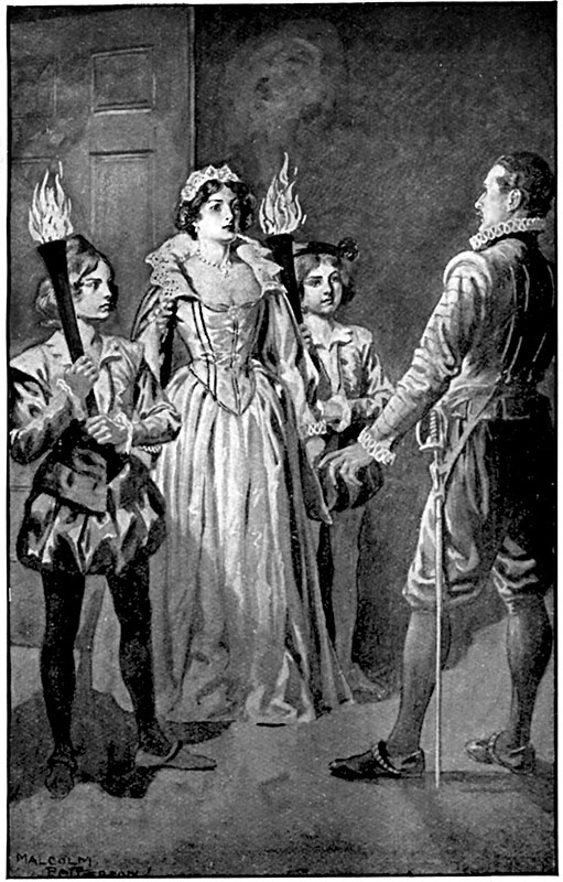 Ла Моль направился по коридору, все больше погружаясь в темноту, как вдруг в противоположном конце раскрылась дверь, на пороге появились два пажа с двусвечниками и осветили фигуру выходившей дамы, величавой и замечательно красивой.