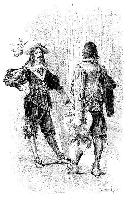 – Мы будем иметь честь напасть на вас, – отвечал Арамис, приподняв шляпу одной рукой и вынув шпагу другой.