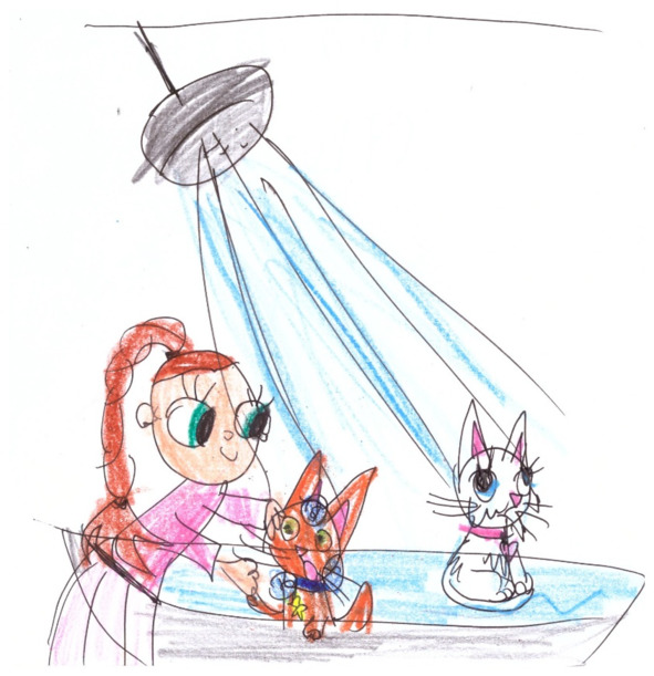 И Мия посадила котят в ванну и включила душ. Котят окатило.