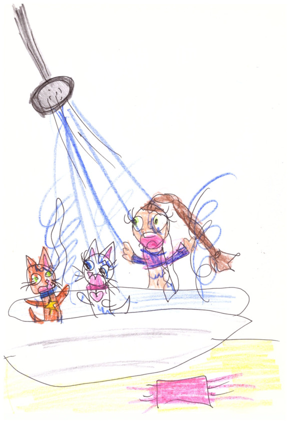 Мия пошла уговаривать, и мама разрешила!! Мия и котята одели комбинезоны и пошли гулять. На улице мерзли щеки, было очень холодно. Мия и котята бухнулись в снег. Была чудесная погода. Через пол часа мама Мии загнала всех в дом. И сказала немедленно выпить чай и принять ванну. Все сели пить чай. Мия, Пушка и Озри выпили чай – горячий с лимоном. И мама набрала ванну – кипяток! Такой, что даже один палец не окунуть! Но мама решительно раздела Мию до трусов и топика и решительно окунула!
