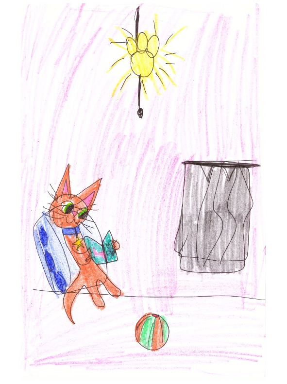 В час ночи мама пришла будить Мию. Она ее еле разбудила. Мия сонная встала, одела халат и тапочки и пошла на кухню. Пушка встала и потянулась. Вход в лежанку Озри был завешен. Пушка откинула уголок и заглянула к брату. Ночник горел, Озри сидел и… и… он спал! В лапах он держал книжку. Получается, Озри заснул, когда читал. Пушка разбудила брата: