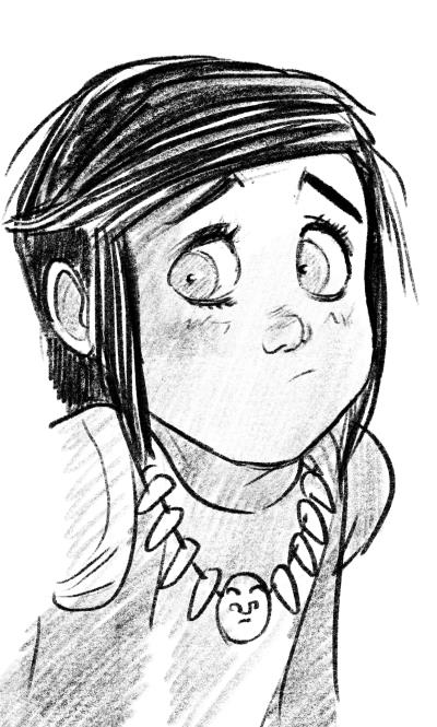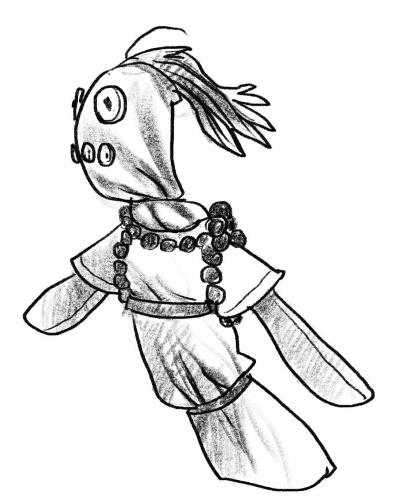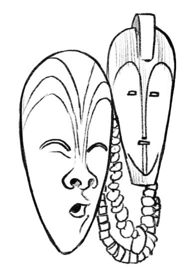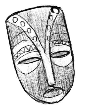 Между волчьими зубами в ожерелье Вудини и вправду висела подвеска в форме африканской маски: выточенное из дерева лицо с огромным носом, таким же большим ртом и очень маленькими прищуренными глазками. Девочка скосила глаза на кулон. Маска сморщила нос, отчего её глаза сузились ещё больше.