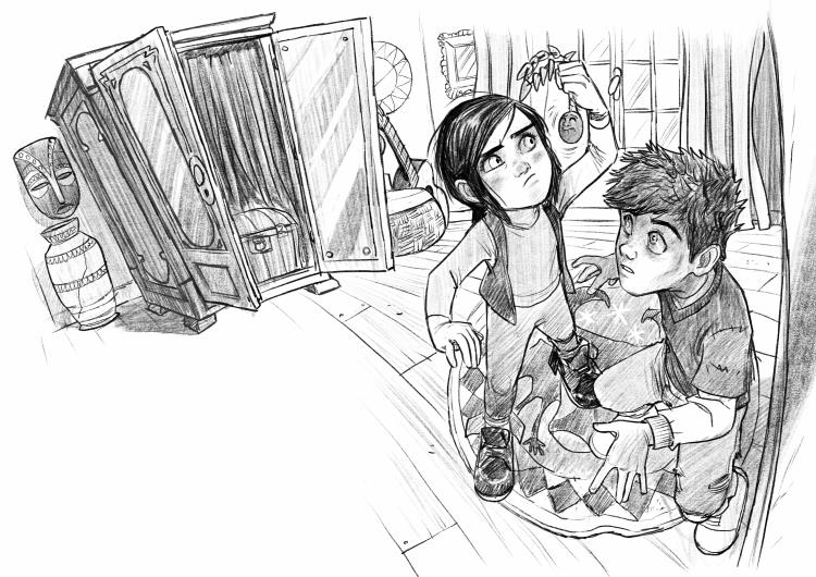 – Вот откуда эта музыка, – проворчала Вудини, вытаскивая из шкафа старый магнитофон. – Странно, он даже не включён в розетку. – Она вынула кассету, и музыка наконец смолкла. Вудини начала копаться в одежде и прочем хламе, заполняющем шкаф, пока не наткнулась на какой-то сундук. Дозорный кулон снова чихнул. – О! Кажется, я нашла! – воскликнула она, пытаясь вытащить сундук из шкафа. – Помоги мне.