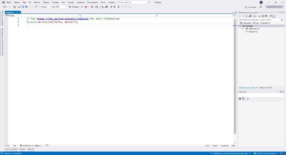 3. Комментарий, который автоматически пишется при выборе языка C#, можно убрать ради чистоты кода:
