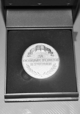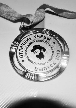 Золотая медаль. Ни единой четверки за 5 лет обучения в институте, 2010 год.
