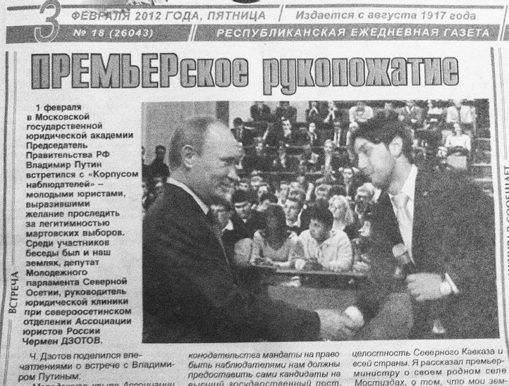В 2012 году за заслуги в сфере общественной деятельности меня отправили на встречу с Путиным. Перед встречей сказали, что поскольку я не в списках, то не смогу задать свой вопрос. Но я умудрился сесть в первый ряд, выйти к президенту и задать три вопроса. Наше рукопожатие показали по всем телеканалам страны. На следующий день я был на обложке всех республиканских газет. В обед мне позвонил президент республики и сказал, что хочет со мной дружить.