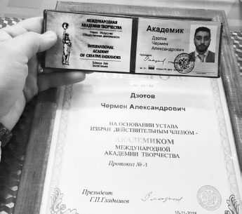 Три года назад за заслуги в профессии Международная академия творчества вручила мне статус действительного академика, сделав меня самым молодым академиком страны.