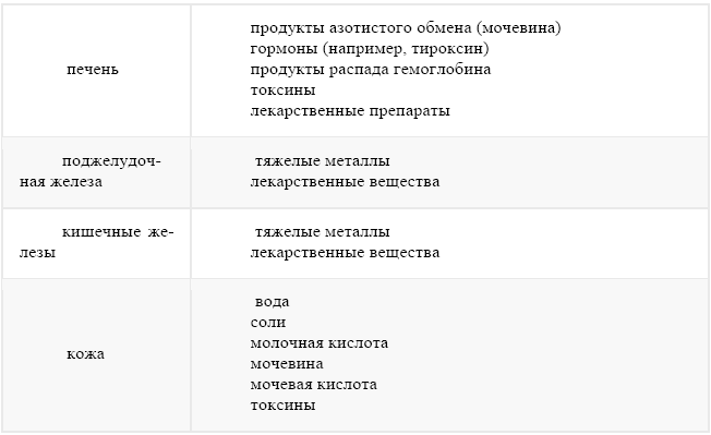 • экскреторная функция: выделение из организма конечных продуктов азотистого обмена, чужеродных веществ, избытка органических веществ (глюкоза, аминокислоты и др.).