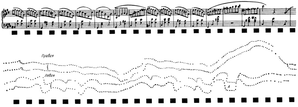 Рис. 4. Запись игры пианиста в Государственном институте музыкальной науки, 1925 г.