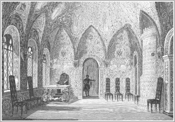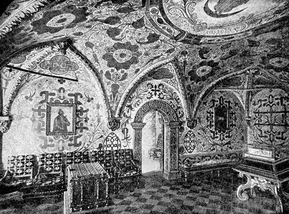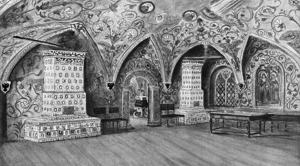 Летописи конца XV века и современные им записки упоминают, к случаю, среднюю горницу, в которой великий князь Иван Васильевич, в 1479 г., по случаю торжественного освящения нового Успенского собора и перенесения в этот собор мощей московских чудотворцев, угощал митрополита и духовные власти. Упоминают еще набережную горницу великого князя (1488), набережный сенник, а также середнюю повалушу великой княгини Софьи Фоминичны25, где представлялся ей посол цесарский Юрий Делатор, в 1490 г., и столовую гридню и повалушу великого князя, записанные летописцем по случаю заключения в 1492 г. несчастного угличского князя Андрея Васильевича26. Здесь одна только повалуша не упоминается более ранними летописцами, что, однако ж, не позволяет заключать, что повалуши не было в наших древнейших постройках, что ее не было и на княжих дворах. В других памятниках старинной письменности, относящихся даже к XII в., упоминается и повалуша, и вдобавок с обозначением, что она бывала расписываема, т. е. украшаема живописью.