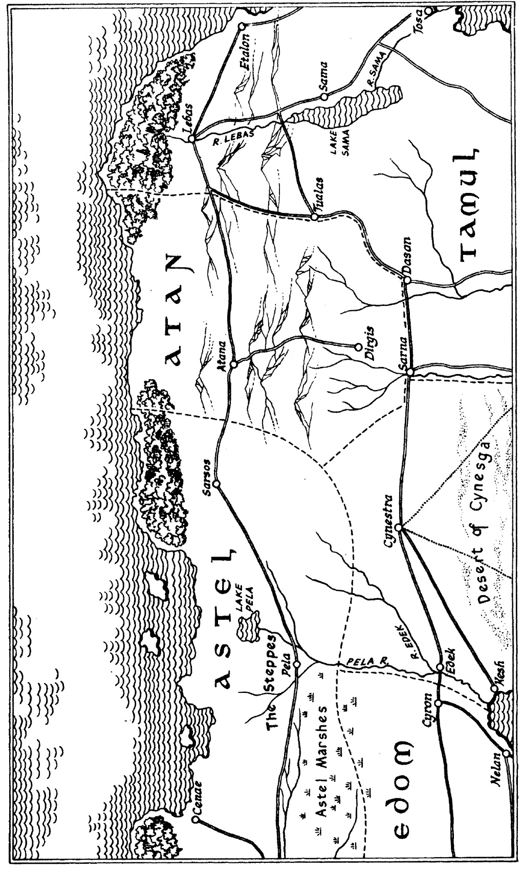 As Engessa had calculated, the Sarsos garrison arrived about noon the following day, and the hugely increased escort of the Queen of Elenia marched easterly. Two days later, they crested a hill and gazed down at a marble city situated in a broad green field backed by a dark forest stretching to the horizon.