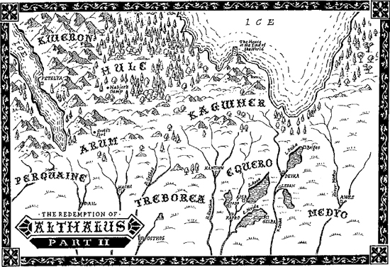 The tag-end of winter dragged on for the next month or so, and then one night a warm wind blew in from the southwest, cutting the snow away almost overnight. Althalus stood at the south window watching the muddy brown streams overflowing their banks as they ripped their way down the mountainsides of Kagwher. ‘Did you do that, Em?’ he asked.