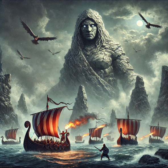 The great stone standing in the Vikings’ path was known to the people as Giantess Krimgerd. She loomed over the sea, her gray, craggy body rising from the depths like an ancient, watchful woman. Many ships had wrecked upon her cliffs, and countless whirlpools had swallowed brave sailor’s whole. But the Giantess Krimgerd was not without mercy. She did not harm merchant vessels. Instead, she allowed them to pass unharmed, silencing the whirlpools while they sailed by.