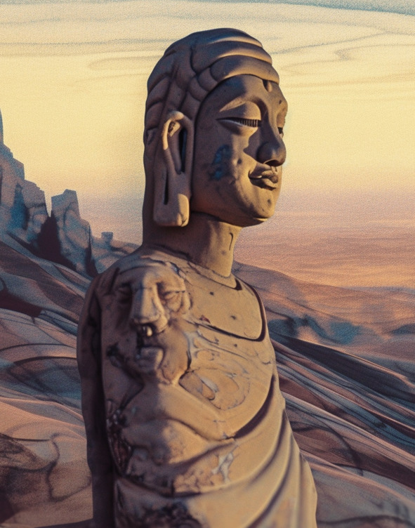 Well, the gates had opened themselves. His wife wept. “Go to her! Beg for her forgiveness!” she pleaded. At last, fear took hold of him. He wrapped his face, took a staff for support, and walked into the storm. He wandered for hours, growing weak. The statue was nowhere to be seen. At last, he reached the mountains and began to climb, believing that a sacred force was guiding him.