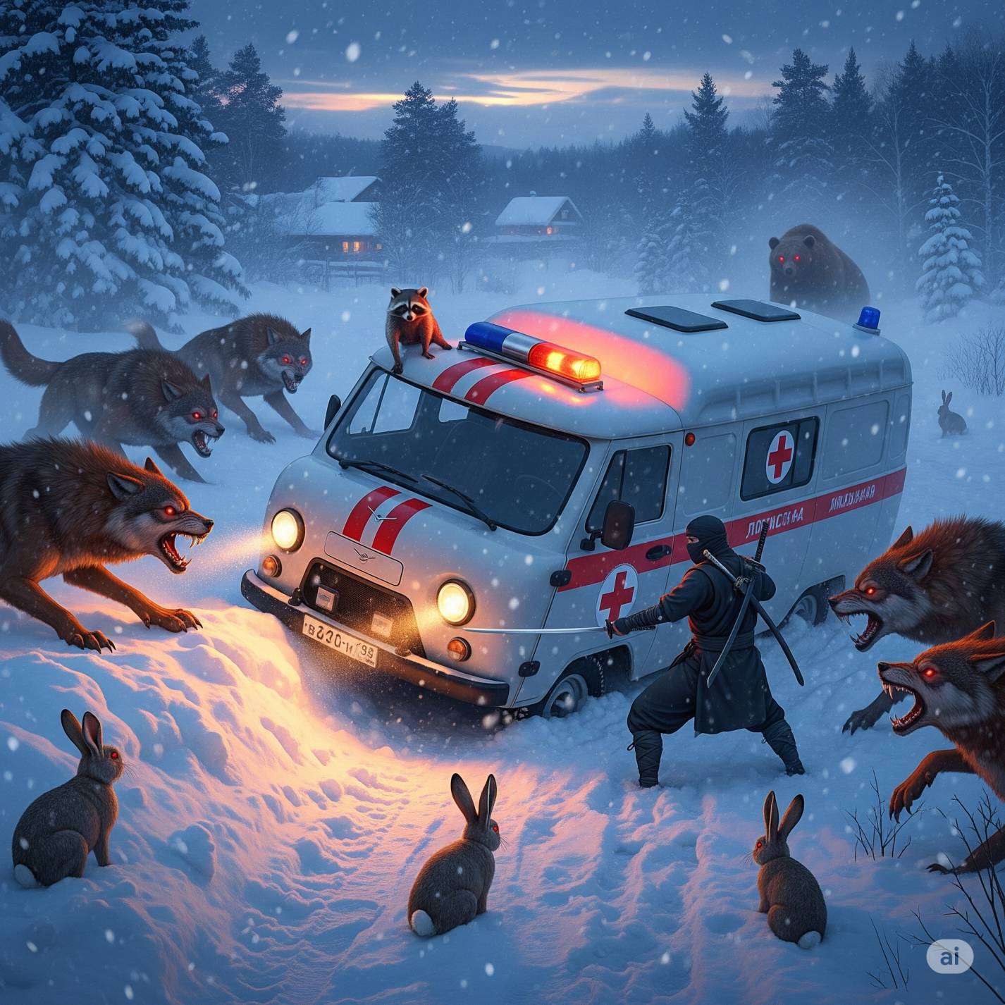 Его услышали все. Дважды повторять не пришлось. Наталья первая заскочила в машину. Слава отстреливался. Я пятился спиной к машине, как вдруг почувствовал движение справа, повернулся и всадил меч, высунувшимся из-за машины медведю, в глаз, почувствовав, как сталь уперлась в стенку черепа. Выдернул меч, медведь упал мне под ноги около дверцы машины. Юля, выстрелила и, перепрыгнув медведя, заскочила в машину. Следом начал забираться я, ноги уже дрожали от усталости. На медведе стоять было не удобно. Юля с Виталей затащили меня в машину. Следом сунулся Слава, вдруг его лицо исказилось от боли, мертвый медведь внезапно ожил, встал на дыбы и полоснул его лапой по спине, разом превратив его куртку и спину в лохмотья. Я схватил Славу за плечо и не дал ему вывалиться из машины. Виталя просунул ствол на улицу и выстрелил медведю в морду. Выстрелом мишку откинуло, и я смог захлопнуть дверь, рыбкой проскочил на водительское сиденье, завел мотор, включил заднюю передачу, выдернул машину из сугроба и поехал к поселку. Оскаленная морда енота показалась в разбитом окошке. Виталя снял её выстрелом, и устало откинулся на сиденье, баюкая руку.