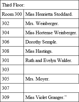 Mrs. Hilliard handed her a paper, a methodical list of the bedrooms on the second and third floors, and Mary Louise copied it, just as it was, into her notebook: