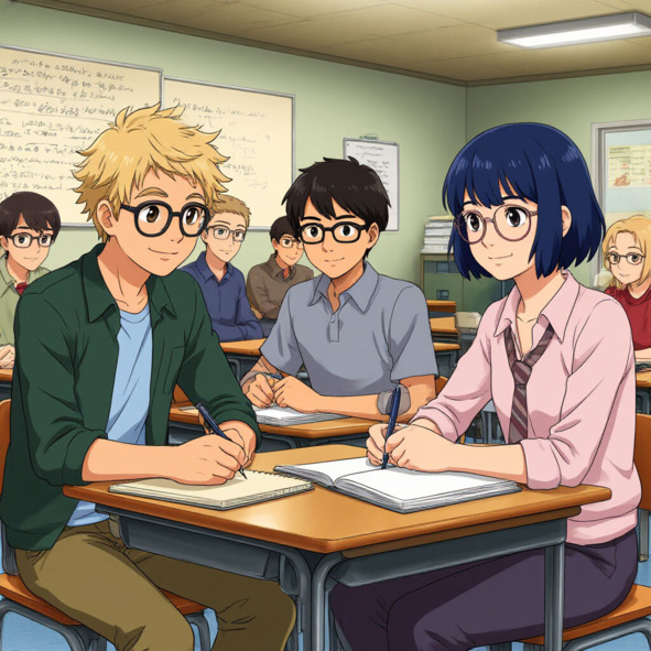 Генрих, сидя за последней партой, пытался втянуть в себя воздух, как учили. Но мысли путались: «67 дней… А я даже запятые ставить нормально не умею». Его взгляд упал на Аню, которая у окна заплетала синюю прядь в косичку. Она поймала его взгляд и подмигнула. Он резко отвернулся, ударив коленом о парту.