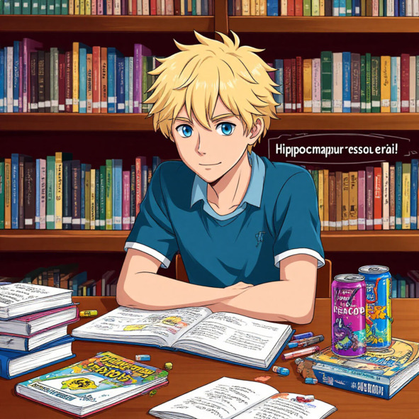 Егор устроился в школьной библиотеке за столом, заваленным учебниками, маркерами и пачкой энергетиков. На доске красовалась надпись: «Рейд по спасению гиппокампа! Этап 1: Химия vs. Лирика».