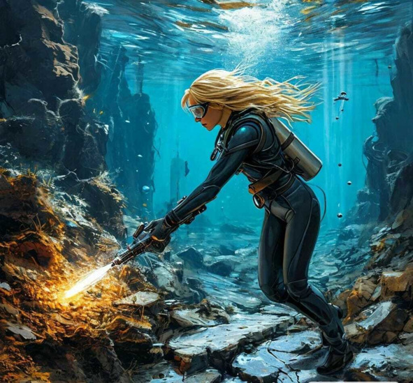 Через час Лия уже была в гидрокостюме нового поколения, который мог выдерживать экстремальные давления и температуры. Вместе с ней в миссии участвовали два опытных дайвера и робот-помощник по имени «Нептун».