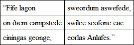 The original text of the Song of Maldon will be found in Thorpe’s Analecta Anglo-Saxonica. My extracts are made from the modern English version which I attempted in my Old-English History, p. 192. I went on the principle of altering the Old-English text no more than was actually necessary to make it intelligible. When a word has altogether dropped out of our modern language, I have of course changed it; when a word is still in use, in however different a sense, I have kept it. Many words which were anciently used in a physical sense are now used only metaphorically; thus “cringe” is used in one of the extracts in its primary meaning of bowing or falling down, and therefore of dying.