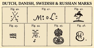 DUTCH, DANISH, SWEDISH, AND RUSSIAN MARKS40. Weesp. Crossed swords and three dots. Similar mark used elsewhere.