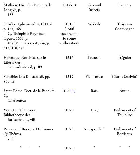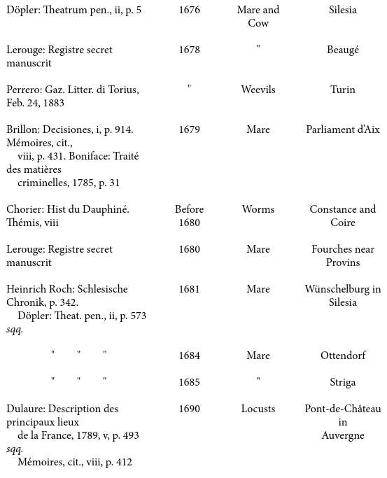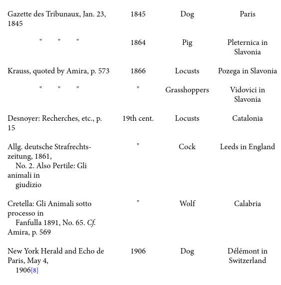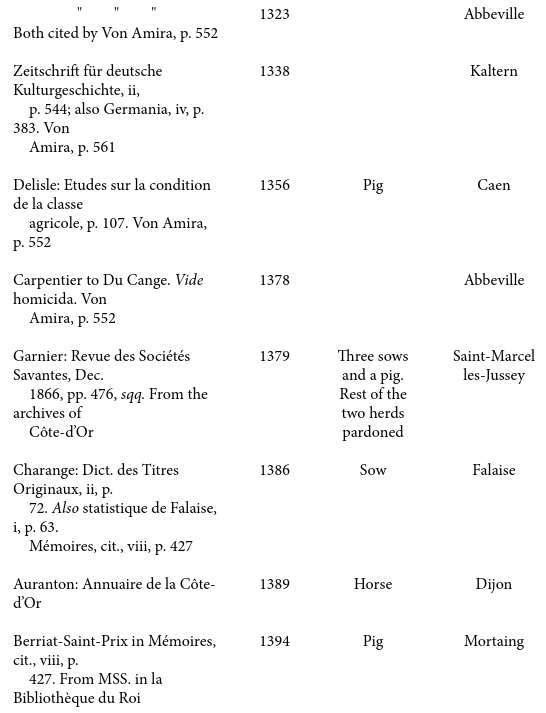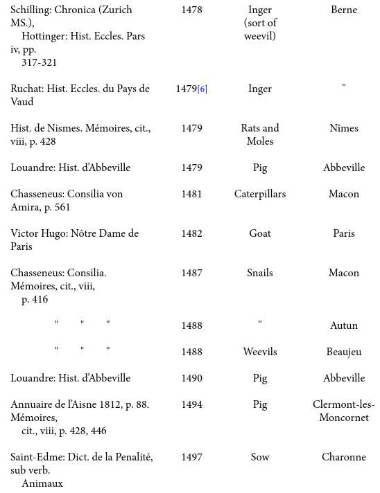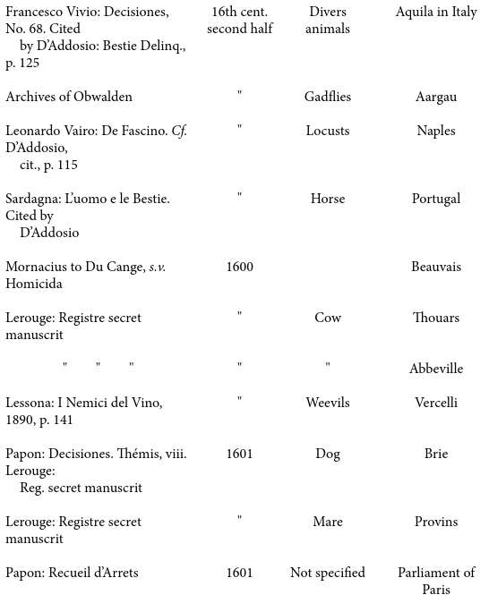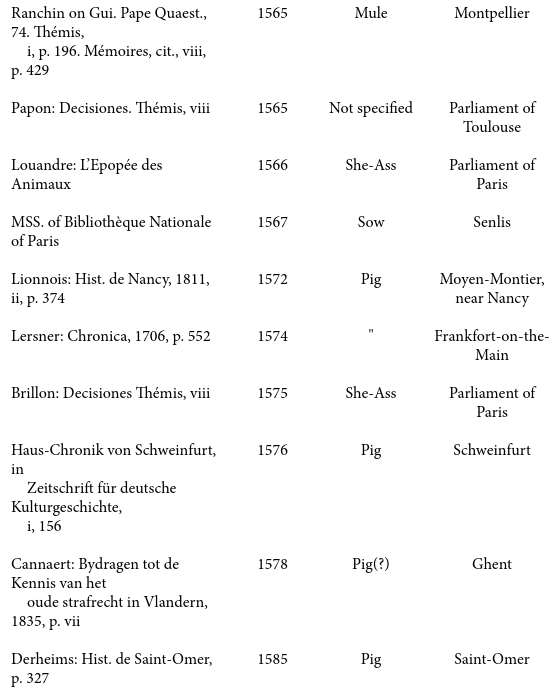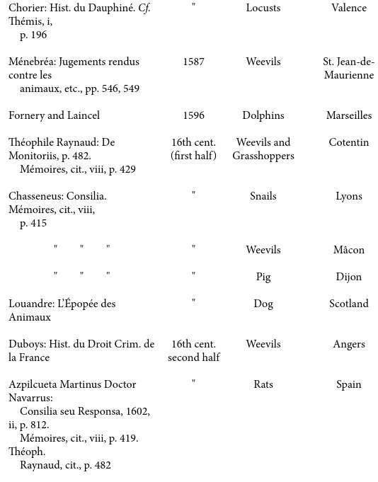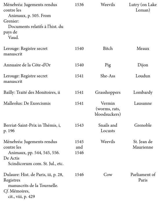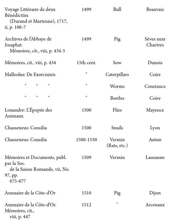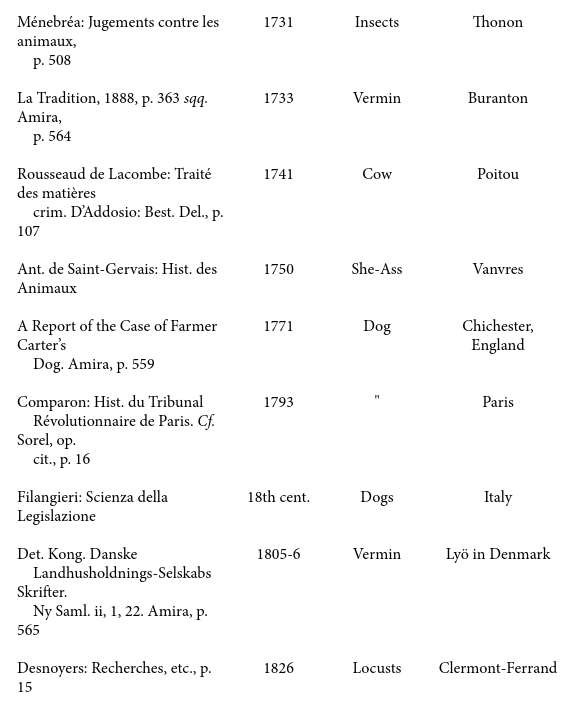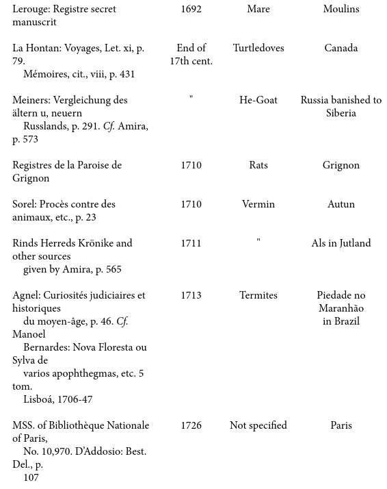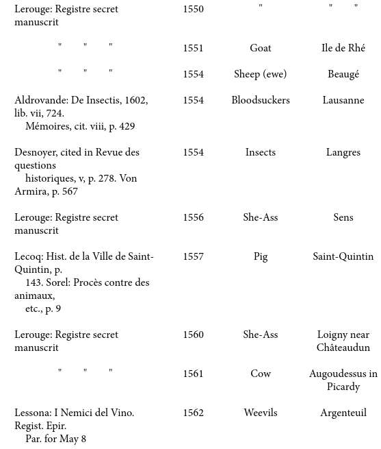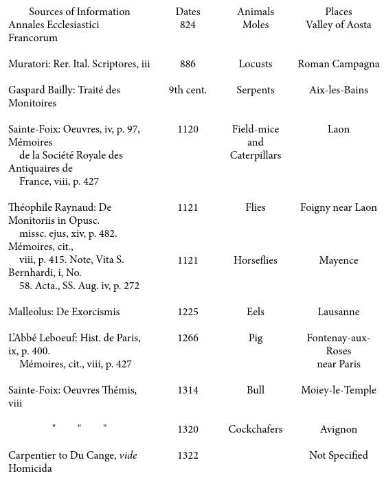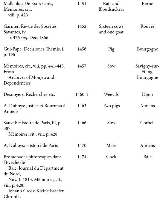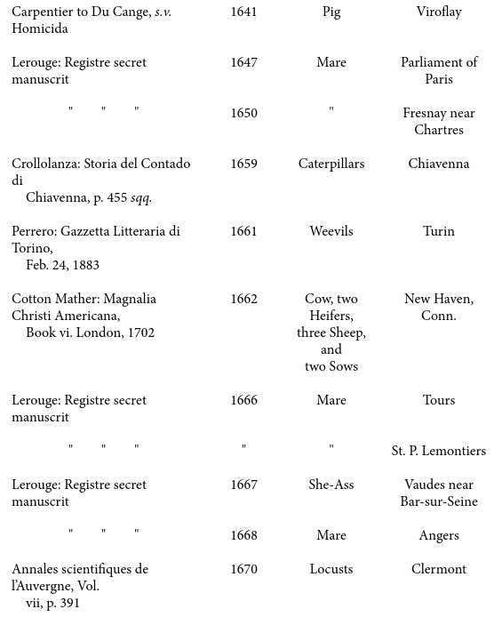 FChronological List of Excommunications and Prosecutions of Animals from the Ninth to the Nineteenth Century.5