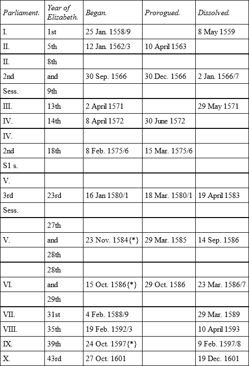 SESSIONS OF PARLIAMENT IN THE REIGN OF ELIZABETH