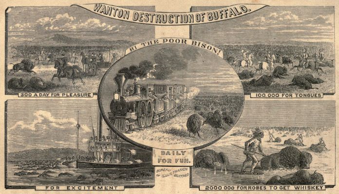 Let this slaughter continue for ten years, and the bison of the American continent will become extinct. The number of valuable robes and pounds of meat which would thus be lost to us and posterity, will run too far into the millions to be easily calculated. All over the plains, lying in disgusting masses of putrefaction along valley and hill, are strewn immense carcasses of wantonly slain buffalo. They line the Kansas Pacific Railroad for two hundred miles.