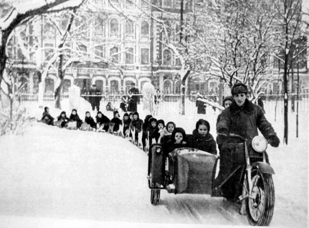 Детский велосипед в 40-е годы был редкостью. Отец мне купил, вероятно, трофейный комбинированный (двух- и трёхколёсный) велосипед. Красного цвета с металлическими накладками и надписями на раме, он был очень эффектен. Помню, мама плакала, не зная «как свести концы с концами», ведь отец затратил на него почти всю свою зарплату. Зато я был в почёте. Каждый из ребят со двора жаждал покататься. Установили очерёдность: если один на велике, то другой стоит на задней оси, третий толкает сзади.