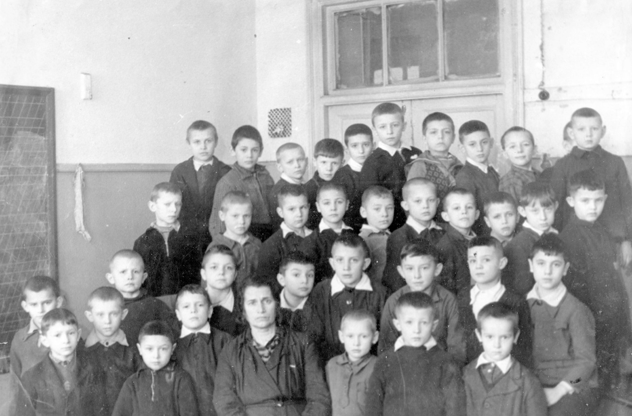 Жалкие послевоенные школы. Кроме доски, мела, тряпки и парт – в классах нет ничего. В конце 40-х годов стали вводить школьную форму. До этого дети по 40–45 человек находились в классе в чём попало, случалось, что летом кто-то приходил босиком. И это даже в московской школе в центре города.