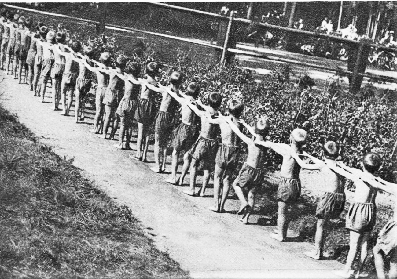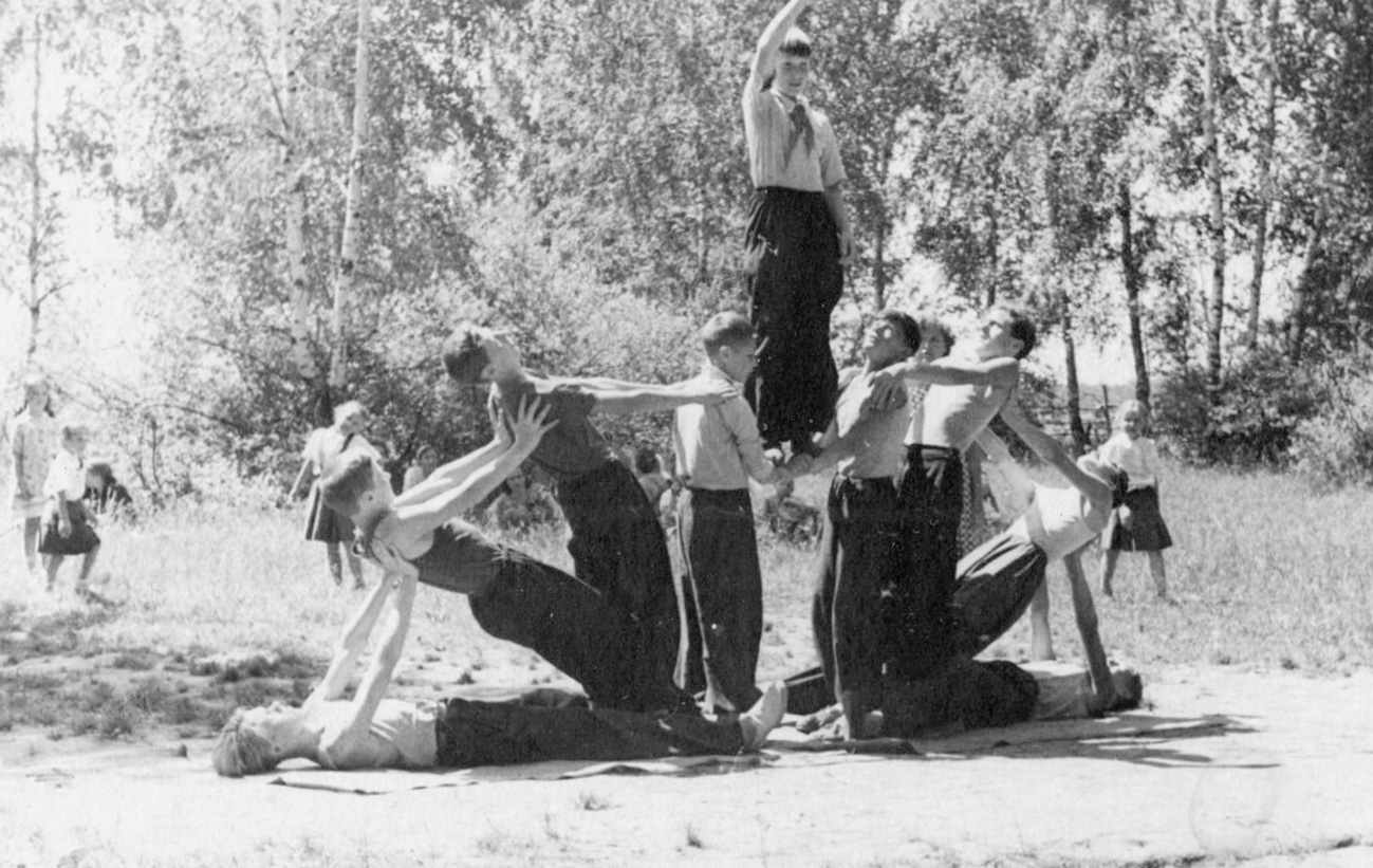 Летом почти все ребята направлялись в пионерские лагеря за город. Но существовали организованные детские отряды и в городе. В 1947 году меня тоже отправили туда в первый раз. От Москвы до лагеря ехали в открытом кузове грузовика. Нас посадили на простыню, расстеленную на полу кузова. Никаких досок для сидения, которые устраиваются обычно для взрослых, в кузове не было. Ребят много, сидели скопом – не повернёшься. На жёстком полу подбрасывало на ухабах, но песни все-таки пели. Помню, ногу отсидел, затекла от неудобства. Из питания в том лагере остались в памяти мягкие, гладкие, солёные огурцы с пустотами внутри. Как проводили время? Весело и здорово, если не считать дежурства по столовой (необходимо было чистить картошку) и ежедневные построения на «линейках» утром и вечером, где председатели советов отрядов докладывают о наличном составе, утром вожатые сообщают распорядок дня, а вечером – кто в чем отличился и результаты соревнований при их проведении. Сформированные по отрядам, ходили купаться. Устраивались соревнования в футбол, в волейбол, звено на звено, отряд на отряд.