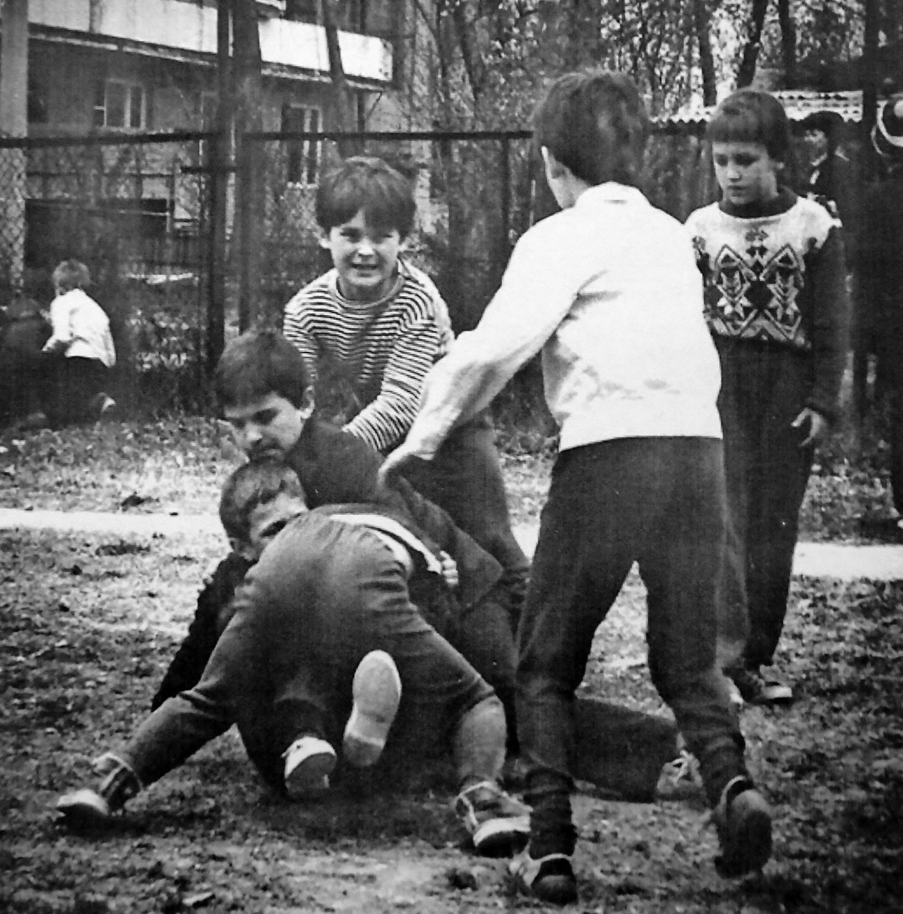 Дворы в центре Москвы запомнились их уникальной жизнью. В нашем доме жила девочка лет 7–8, больная прогерией. Она не играла с нами в детские игры, но часто присутствовала при них. И никто из детей ни разу не позволил себе как-нибудь поиздеваться или даже посмеяться над её старческой внешностью. Дети просто не обращали внимания на её лицо.