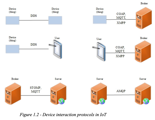 The following protocols of device interaction in IoT are distinguished (Figure 1.2):