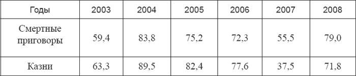 Эти выводы представляются излишне оптимистичными, тем более что они, как и все другие оценки положения дел в этой сфере в КНР, основаны на далеко не полных и фрагментарных данных, подлинная реальность которых должна кардинально изменить такого рода суждения. Но если даже представить, что данные, публикуемые «Международной амнистией», абсолютно достоверны, то тенденции и особенно перспективы применения смертной казни следует, по нашему убеждению, связывать не с «растущим восприятием аболиционистских идей», а с куда более прагматичными и, прежде всего, с политическими соображениями, которые диктуются не столько изменениями в криминологической ситуации, сколько развитием ситуации в экономике страны, ее ролью и местом в мире в период глобальных экономических и политических изменений. Тем более, что даже публикуемая ООН, «Международной амнистией» и другими организациями далеко не полная статистика применения смертной казни в 2001–2008 годах никак не свидетельствует о росте аболиционистских настроений в КНР.