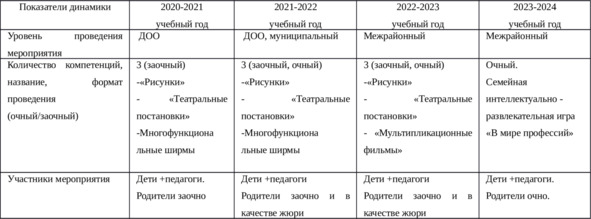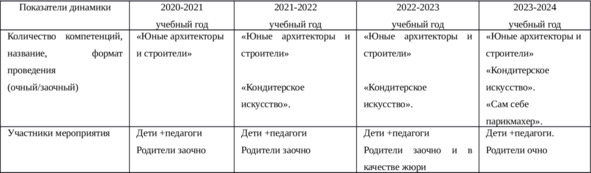 Динамика конкурсной программы «Юный мастер» по ранней профориентации в МБДОУ Игринский детский сад общеразвивающего вида №1 «Ромашка»: