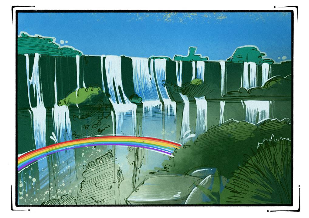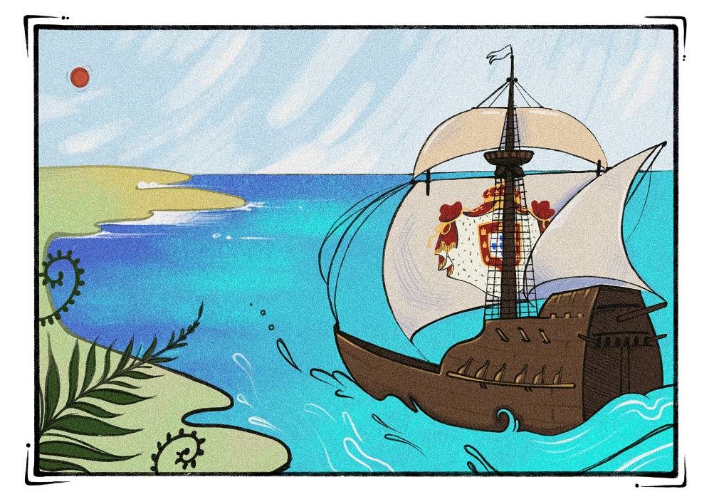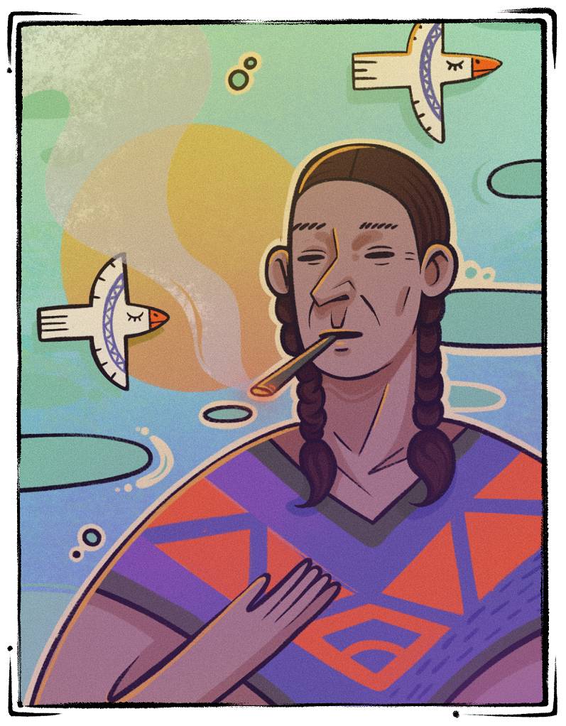 Он рисует море и облака, смуглолицых индейцев в лодках,