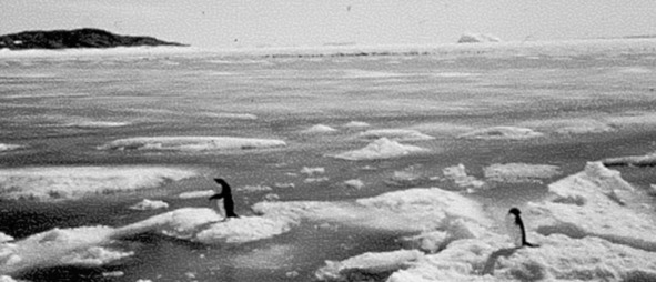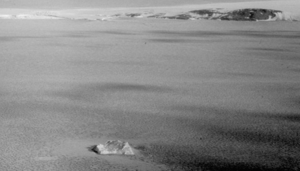 Айсбергов становилось все больше и больше, а море покрылось льдом. Вдали на горизонте все отчетливее вырастал ослепительно белый купол Антарктиды, с четким ледяным барьером (берегом).