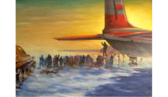 Торжественный момент настал, мы, новички, 13 февраля 1984 г. впервые вступили на землю, вернее на лед, далекого континента. Удивительно тихо, ослепительное солнце, температура воздуха —5°С. По местным понятиям – это тепло, здесь лето. Погода на редкость устойчивая и благоприятная для посадки. Такое не часто бывает, здесь часто бушует свирепая пурга и очень холодно.