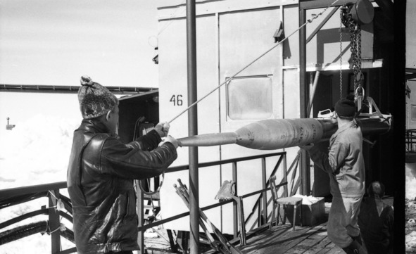 Установив ракету, ракетчики возвращаются в сборочный цех, откуда нажатием кнопки осуществляется пуск. Ракеты здесь запускаются с оглушительным грохотом на высоту до 100 км. Там наверху ракеты головка с приборами отделяется и на парашюте спускается вниз. Во время спуска приборы сообщают данные о температуре и давлении воздуха. По сносу парашюта определяют силу и направление ветра на высотах.