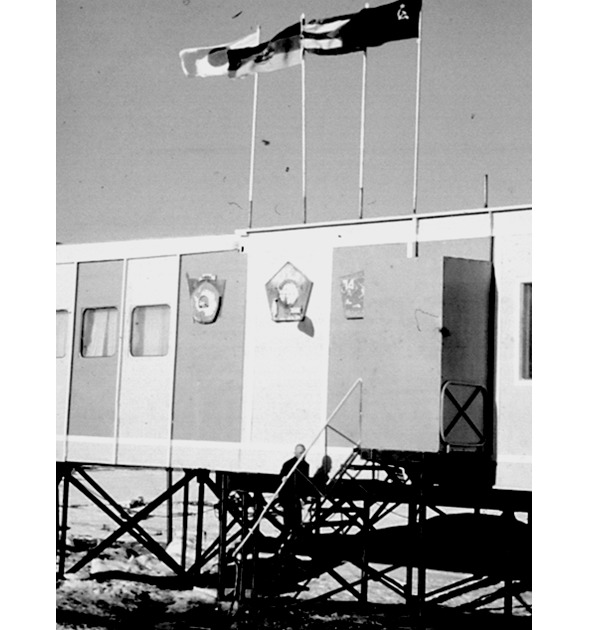 В центре, вблизи кают-компании в большом зеленом здании размещался вычислительный центр. В него была помещена громоздкая электронно-вычислительная машина Минск-32, в машинном зале которой находились шкафы с электроникой и вращающимися магнитными барабанами, помещенными в стеклянные короба, замысловатый электро-механический графопостроитель, стол с пультом управления, на котором набивались перфокарты с техническим заданием для введения в специальное программное устройство. Все эти устройства вызывали у нас большой интерес, поскольку в то время такие компьютеры, громоздкие и не совершенные, только начинали внедряться. Позже мы часто посещали вычислительный центр, так как программа работ на сооружаемом нами ледяном причале была введена в этот компьютер, и мы регулярно получали бюллетени с таблицами среднесуточных и среднемесячных температур воздуха, атмосферных осадков, скорости и направления ветра. Понятно, что такие ЭВМ устарели, и на смену им пришли современные компьютерные системы и Интернет.