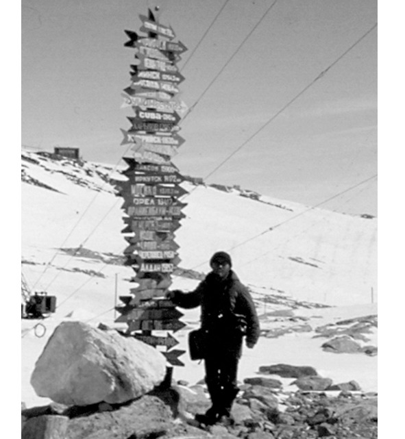 Вблизи кают-компании на площади стоит столб с металлическими стрелками-указателями, на которых обозначены расстояния до Москвы, Ленинграда, Вашингтона, станции Восток, Южного и Северного полюсов, а также и Краснодара, до которого всего лишь 12542 км.