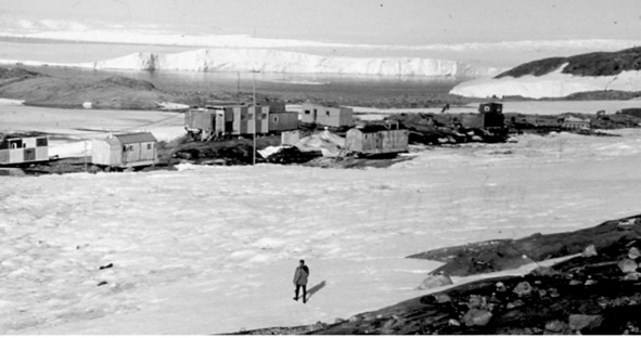 Среди царства сплошного льда вдали чернеет небольшая полоска земли, на которой заметны многочисленные спички антенн и крошечные коробки домиков. Земля становилась все ближе, а мачты и дома все больше. Самолет, сделав большой круг над ними (это станция Молодежная), уверенно пошел на посадку.