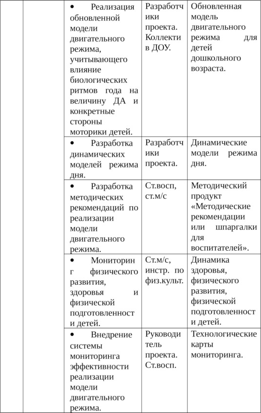 – разработку динамических режимов дня и модели двигательного режима детей дошкольного возраста в соответствие с особенностями природно-климатических условий Крайнего Севера и биологических (сезонных) ритмов года.