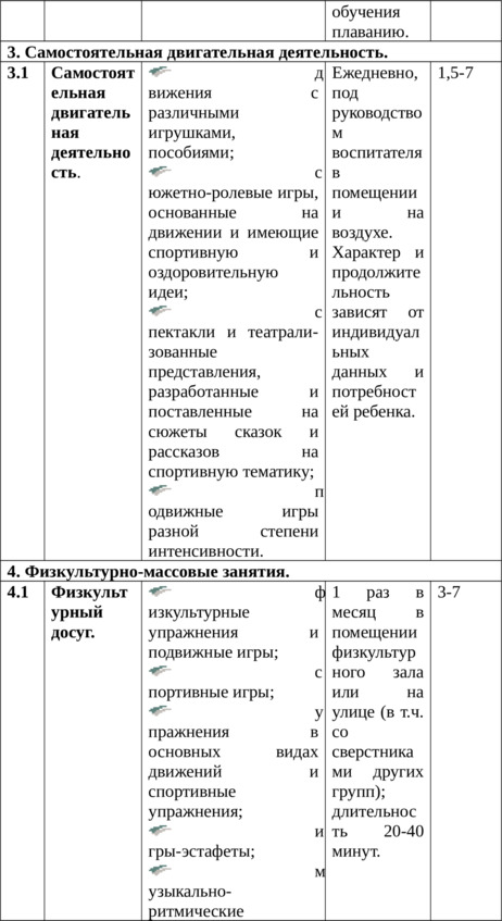 В процессе работы выявлены значительные изменения в содержании самостоятельной деятельности детей. Так, умения и навыки, приобретенные в организованных видах деятельности по физическому воспитанию, дети переносили в самостоятельную деятельность.