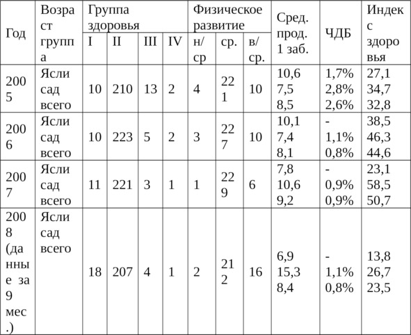 К концу 2008г. отмечено перераспределение детей по группам здоровья. Значительно уменьшилось количество детей III гр. здоровья и увеличилось число детей II гр. здоровья.