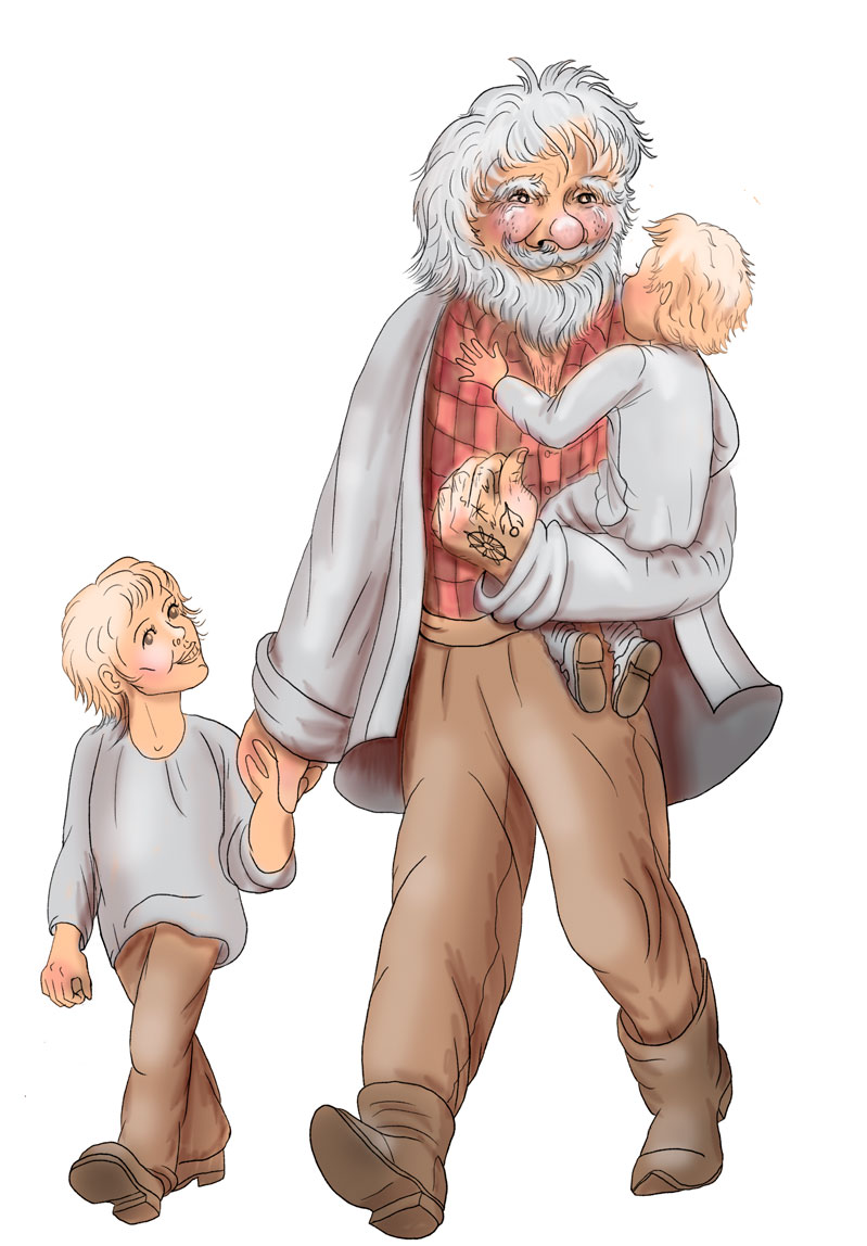 Джилл вовсе удивился, когда однажды старый корабельный плотник взял младших детей Джинти с собой на прогулку. Со стороны было забавно наблюдать, как этот увалень держал на руках маленького Томми, а Дэви шёл рядышком с ним и держался за его широкую штанину. Малыш поглядывал на своего патрона, как